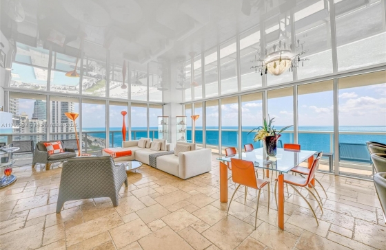 1830 S Ocean Dr #1201, Hallandale Beach, FL, 33009 Truly unique NE corner unit with 270° of direct ocean views! Designed for entertaining, this one-of-a-kind residence features a dramatic stretch ceiling, custom finishes, wood doors, marble floors, electric shades, and recessed lighting. The Primary Suite offers his-and-hers dressing rooms and custom walk-in closets. Italian kitchen equipped with premium KitchenAid appliances. Enjoy 5-star resort amenities: a grand 2-story lobby, 24-hour security and valet, five heated pools, and a 50,000 sq. ft. oceanfront spa and fitness center. Resort living at its finest!