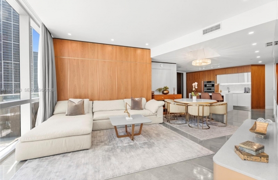 851 NE 1st Ave #1409, Miami, FL, 33132 A redesigned 2-bedroom + den with the option to convert into a 3-bedroom, located in the heart of Miami Worldcenter. Unit #1409 features custom doors, handles, flooring, window treatments, millwork, upgraded lighting, wallpaper, built-in storage, and a premium audio system. Enter through a private lobby with secure keycode access, custom finishes, and built-in cabinetry to maximize storage. The residence opens through a foyer hallway which leads you to the bright living areas with water and skyline views. The expansive outdoor terrace, located above the amenity deck, includes a TV and lounge space to enjoy the bay and city skyline views. The residence is fully-furnished and located in the building with the most amenities in the world.