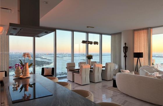 700 NE 26th Ter #5401, Miami, FL, 33137 Spectacular turnkey residence on the 54th floor at Missoni Baia, presenting unparalleled luxury living with breathtaking Bay, Ocean and skyline panoramic views. This 3 bedroom 4.5 bath plus Den/Maid Quarters, corner residence is thoughtfully curated and delivered fully furnished with high-end finishes, built-ins, designer wallpaper and original artwork, making it truly move-in ready for the most discerning buyer. The residence features floor-to-ceiling windows with stunning water views, custom designer closets throughout, and a remarkable primary closet that resembles a luxury boutique. Each of the three ensuite bedrooms flows seamlessly with elegant finishes and abundant natural light. The chef’s kitchen is appointed with premium appliances and exquisite finishes, complementing the sophisticated living and dining spaces. This home features a custom designed walk-in bar, perfect for intimate gatherings. Every detail has been thoughtfully considered to ensure comfort, style and convenience. Missoni Baia offers resort-quality amenities curated to elevate everyday living and a world-class five-star experience. Residents enjoy an Olympic-sized lap pool, multiple resort-style pools with cabanas, an expansive spa and wellness center, state-of-the-art fitness facilities, tennis courts, private screening and game rooms, hair and nail salon, children’s club, pet spa, concierge and valet services, and multiple event spaces overlooking Biscayne Bay.
