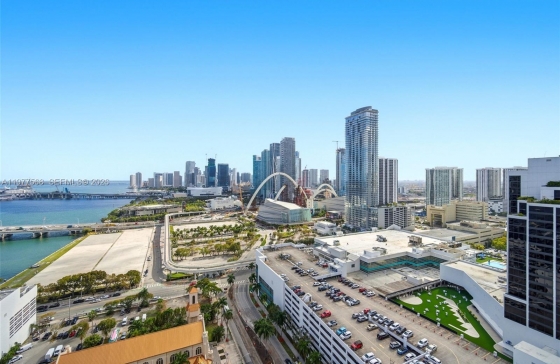 1717 N Bayshore Dr #A-3354, Miami, FL, 33132 The kitchen has been beautifully renovated, with the former curved wood wall removed to create a more open layout, maximizing the 1,500 sq. ft. floor plan and enhancing the surrounding views.