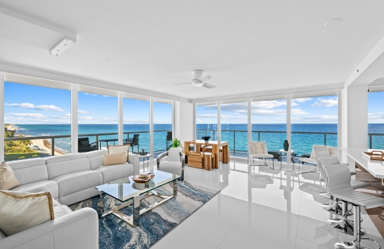 3505 S Ocean Blvd #10n, Highland Beach, FL, 33487 Visit this outstanding and renovated 3/3 residence on the sand, offering long ocean and coastline views, as well as twinkling city lights and intracoastal views, emphasized by the floor to ceiling glass windows/doors and glass balcony railings. The wrap around balcony encircles and expands the generous living space. The property is effectively a double corner unit, as it comprises the entire North side of the building from East to West (ocean to Intracoastal). The 24 unit ``boutique style`` building offers keyed elevator access to a private foyer entry for each individual residence.