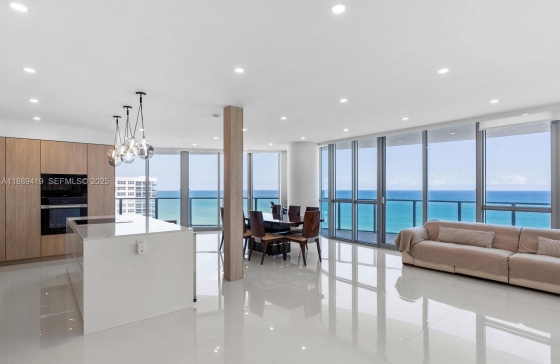 3101 S Ocean Dr #1608, Hollywood, FL, 33019 Completely remodeled direct oceanfront residence at Ocean Palms. 3,091 sq. ft. interior + 513 sq. ft. balconies. Beautiful Italian slab tile floors throughout, custom bathrooms with European fixtures, master bath with double vanity, tub, glass shower, and walk-in closets in all bedrooms. Leicht German kitchen with custom cabinetry, quartz counters, Miele appliances incl. induction cooktop and retractable downdraft vent. Two new AC units. Three balconies with ocean, city & Intracoastal views. Amenities: resort-style pool, 2-story fitness center, spa, party & billiard rooms, movie theater, tennis court, BBQ area, 24/7 security, valet. Apartment includes 2 garage spaces & storage.
