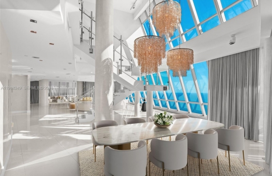 17121 Collins Ave #4806, Sunny Isles Beach, FL, 33160 Experience elevated oceanfront living in this reimagined 8,332 sqft Penthouse showcasing breathtaking 360 degree views of the ocean, downtown Miami, and the intracoastal. This two-story masterpiece offers 6 bedrooms, 7.5 baths, a private elevator, gym, sauna, media room, and more than 2,000 sqft of terraces, with every room opening to its own private outdoor retreat. Curated with top tier furnishings and over $2M in upgrades, Penthouse 4803 delivers unmatched sophistication, scale, and comfort. Residents enjoy two pools, beach service, a full spa and fitness center, children’s playroom, business center, concierge, valet, and attentive doorman services.