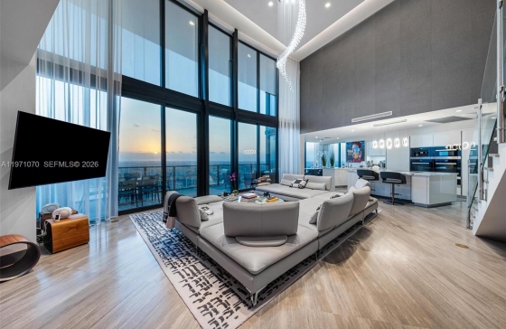 18555 Collins Ave #5003, Sunny Isles Beach, FL, 33160 Experience elevated luxuries in this one of a kind Duplex in the sky, Residence 5003, boasting over 22ft ceilings soaring into the sky, this is a rare gem in which few are available, Meticulously finished, this turnkey 3 bedroom plus Den, 4.5 bathrooms home in the sky, has been designed with Roche Bobois, custom pieces, throughout the home, including Ornare costom closets, wall finishes, and detailed lighting, all in the Iconic Porsche Design Tower. This sky residence has unparalleled views which never end, with expansive living room space & entertaining space, a secondary area perfect as a family room, the flow is like a custom home, each bedroom features its own en-suite bathroom and custom closet. Private elevator entry and you have your own internal elevator which leads to the 2nd level with 22ft ceilings, floor-to-ceiling glass sweeping panoramic views Intracoastal, city, bay and downtown Miami skyline, includes and outdoor space with a gourmet kitchen. The signature car elevator delivers your vehicle directly to your private garage in the sky. Expansive terraces, a summer kitchen, seamless indoor-outdoor living. Enjoy a sleek open kitchen with Miele appliances and refined finishes, plus access to world-class amenities: restaurant, beach service, spa, car lounge, clubroom, yoga & fitness center, with white glove service from our onsite concierge. Live your Dream today ! Miami at its best!