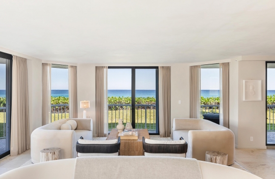 3170 S Ocean Blvd #203 S, Palm Beach, FL, 33480 Located directly on the ocean in the prestigious Enclave building on South Ocean Boulevard in Palm Beach, this beautifully designed residence was created by renowned interior designer Noa Santos. The three bedroom, three bath condominium offers 3,577 total square feet of sophisticated living space with exceptional craftsmanship and high-end finishes throughout. The expansive open living and dining areas are designed for both comfort and elegance, with floor-to-ceiling glass doors that fill the space with natural light and frame the breathtaking ocean views. A wraparound balcony allows for a seamless indoor-outdoor flow with views of the lush green space extending to the Atlantic Ocean creating a serene setting for relaxing and entertaining. The gourmet kitchen is equipped with