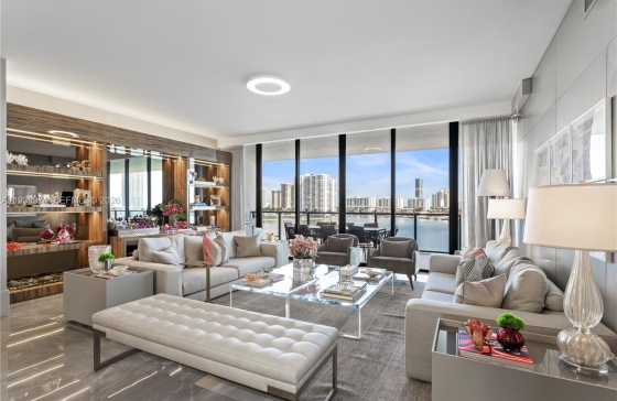 5500 Island Estates Dr #602, Aventura, FL, 33160 Unit 602 at Prive Island Estates North Tower showcases numerous high-end UPGRADES, including porcelain tile flooring and designer wallpaper throughout, including the bathrooms. The elegant powder room features marble flooring, a marble sink, and exclusive Hermès wallpaper. Custom Armadi closets, designer mirrors, and a living room highlighted by custom millwork with integrated shelving, a built-in bar, and concealed doors create a seamless, modern aesthetic. Prive residences offer expansive floor plans with European-style kitchens, soaring 10-foot ceilings, floor-to-ceiling glass, private elevator access, and outdoor summer kitchens. Ideally located on a private island at 5500 Island Estates Drive, the residence enjoys breathtaking water views and exceptional privacy. World-class amenities include a private marina, beach-entry pool, north-south lap pool, lighted tennis court, 10,000-square-foot spa and fitness center, jogging path, business center, private dining and social rooms, private beach, full-service concierge, and more. 2 parking spaces assigned. A must-see unit!