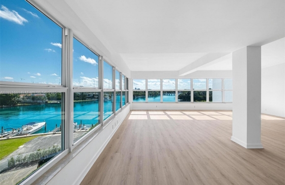 9100 W Bay Harbor Dr #5A, Bay Harbor Islands, FL, 33154 Beautifully updated 2 bedroom, 2.5 bath residence at the Blair House in Bay Harbor Islands. This spacious 1,770 sq. ft. unit features direct water views of Bal Harbour and Indian Creek Island from every room. Interior upgrades include luxury vinyl flooring throughout, impact windows, microcement spa-style bathrooms, and an updated kitchen with quartz countertops and stainless steel appliances. The open living and dining areas offer excellent natural light and a generous layout ideal for entertaining. Split bedroom design provides privacy, with two large ensuite bedrooms and a separate half bath for guests. Blair House is a classic waterfront building located close to Bal Harbour Shops, beaches, parks, and A-rated schools. Move-in ready and perfectly maintained. A must-see.
