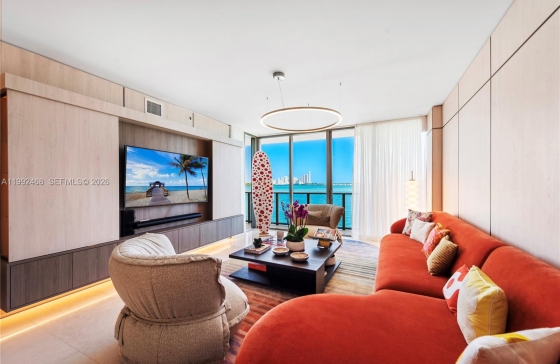 1135 103rd St #303, Bay Harbor Islands, FL, 33154 Exceptional fully upgraded and furnished waterfront residence, masterfully curated by a world-class designer. This sophisticated 3-bedroom layout features a stunning primary suite facing the bay, complete with a private terrace that captures serene water views. The second and third bedrooms open onto an expansive, one-of-a-kind terrace of over 300 sq ft, seamlessly blending indoor and outdoor living. A versatile studio/library and TV room add both functionality and refined comfort. Equipped with a spacious fully-equipped laundry room. Every detail has been thoughtfully designed, showcasing iconic interiors, top-of-the-line appliances, and high-end European bathrooms. The primary bathroom offers a spa-like experience with a generous soaking tub and separate glass-enclosed shower. Spacious walk-in closets and custom lighting fixtures further enhance the residence’s elevated aesthetic. Located within a brand-new boutique tower by renowned developer Ugo Colombo, the building reflects impeccable construction quality and timeless design. Residents enjoy a curated selection of luxury amenities, including a rooftop pool with breathtaking bay views, private marina, full-service spa and wellness center, concierge, and valet parking. The highest luxury condominium in the area. Ideally positioned in the quiet, safe, and exclusive enclave of Bay Harbor Islands, just moments from Bal Harbour Shops and the beach. Private marina slip available at an additional cost.