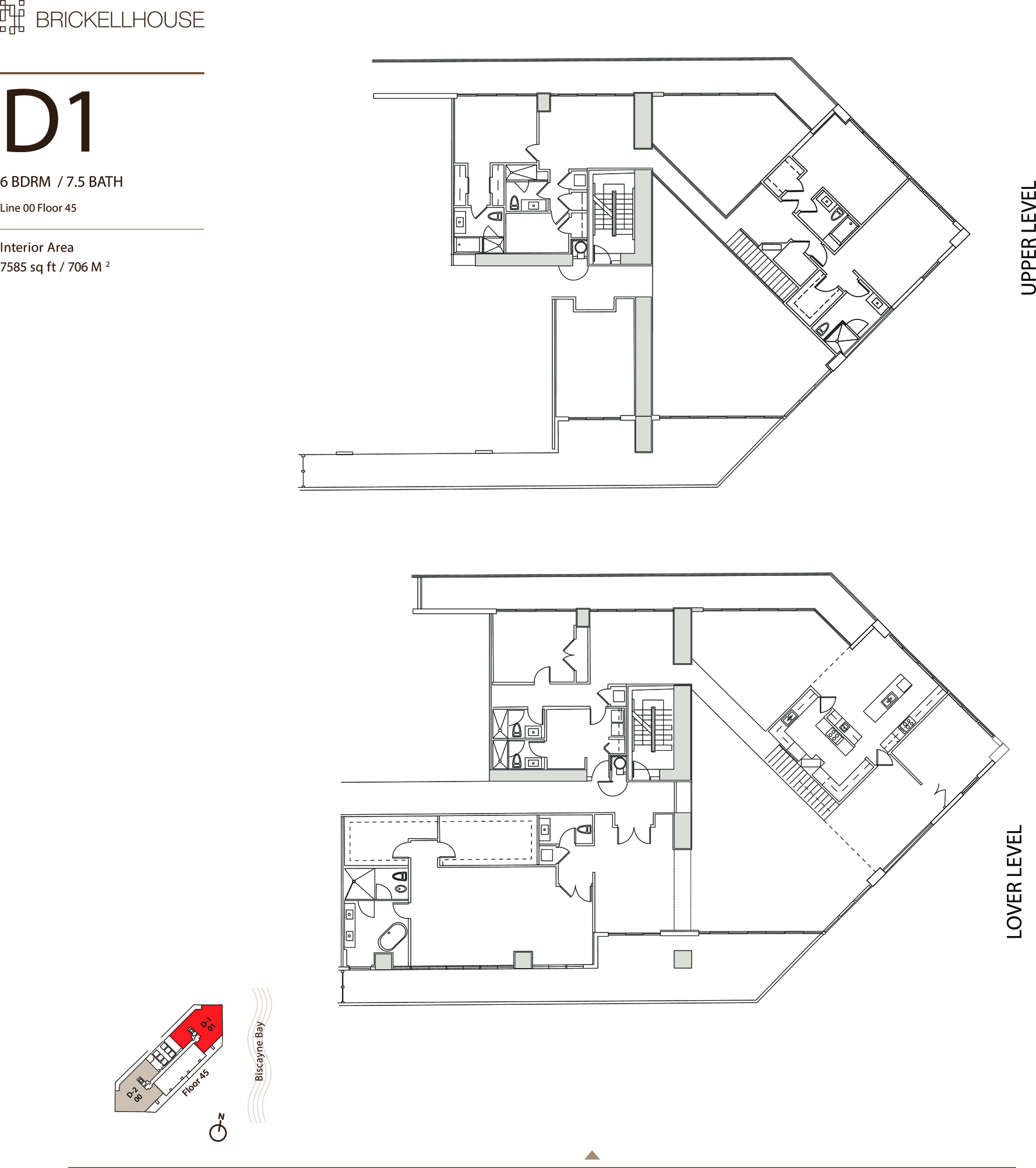 1300 Brickell Bay Dr #4401, Miami, FL, 33131 EXQUISITELY REDESIGNED TWO-STORY PENTHOUSE BY TOGU DESIGN & MASTERFULLY EXECUTED BY SABAL LUXURY BUILDER IN THE HEART OF BRICKELL! Encompassing 6,521 SF of Interiors this Smart Home wrapped in Bay & City Views offers 5 Bedrooms + 6 Baths + 2 Powder Rooms w/Office, Gym & Theater. Soaring 20-foot Ceilings & Floor-to-Ceiling Impact Glass w/sweeping Water Views. Rich Black Walnut Flooring throughout. Residence features Open-Concept Chef’s Kitchen w/premium appliances + a Separate Prep Kitchen. Expansive Primary Suite w/Oversized Spa-like Bath & Custom California Closets. State-of-the-Art Savant Automation System. Building Amenities include Rooftop Pool & Sundeck, 50FT Lap Pool, Owner’s Lounge, Fitness Center. Located in the Epicenter of Brickell w/World-Class Dining, Shopping + Nightlife.