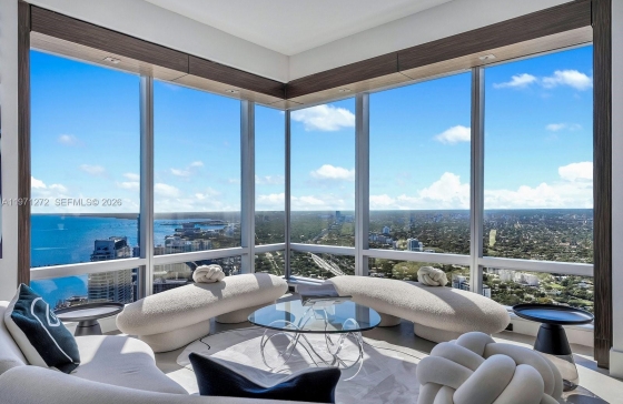 Discover unparalleled luxury on the 60th floor of Four Seasons Residences Brickell. This exceptional 3,554 SF AB combination offers 3 bedrooms, 5 full baths, and dedicated staff quarters. Soaring 10 foot ceilings and dramatic floor to ceiling windows frame magnificent views of the ocean, Biscayne Bay, the City of Miami, and breathtaking sunsets. The primary suite features stunning bay vistas and his and hers walk in closets. A second primary suite includes its own walk in closet, while the third ensuite offers private balcony access overlooking the skyline. Wood paneled built ins, elegant limestone floors, a striking quartzite bar, and a gourmet kitchen elevate the design. Masterfully designed by acclaimed interior designer Bea Pernia, the home reflects refined craftsmanship. Furniture is negotiable. The Four Seasons is a five star world class condo hotel offering a heated infinity pool, Equinox fitness center, spa, concierge, valet, in residence dining, and 24 hour security in the heart of Miami’s financial and cultural center.Any questions about Four Seasons?