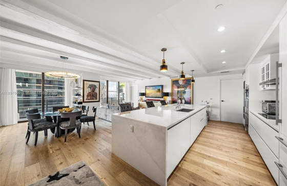 801 S Miami Ave #4507/8, Miami, FL, 33130 High-floor residence at SLS Lux combining units 4507 & 4508 for over 2,000 SF of luxurious living. Fully redesigned with wide-plank European white oak floors, French Country–inspired beam ceilings, and a chef’s kitchen featuring Calacatta stone counters, Wolf, Bosch & Sub-Zero appliances, mirrored backsplash, custom wine closet, and built-in cappuccino maker. Private foyer entry, four full bathrooms, and a split plan with two spacious bedrooms featuring en-suite bathrooms plus custom walk-in closets. Additional den ideal for office, media room, or guest space, plus a third bedroom with en-suite bath. Expansive balcony with breathtaking city views. Flexible financing options available. 30-day rentals allowed up to 3 times per year.