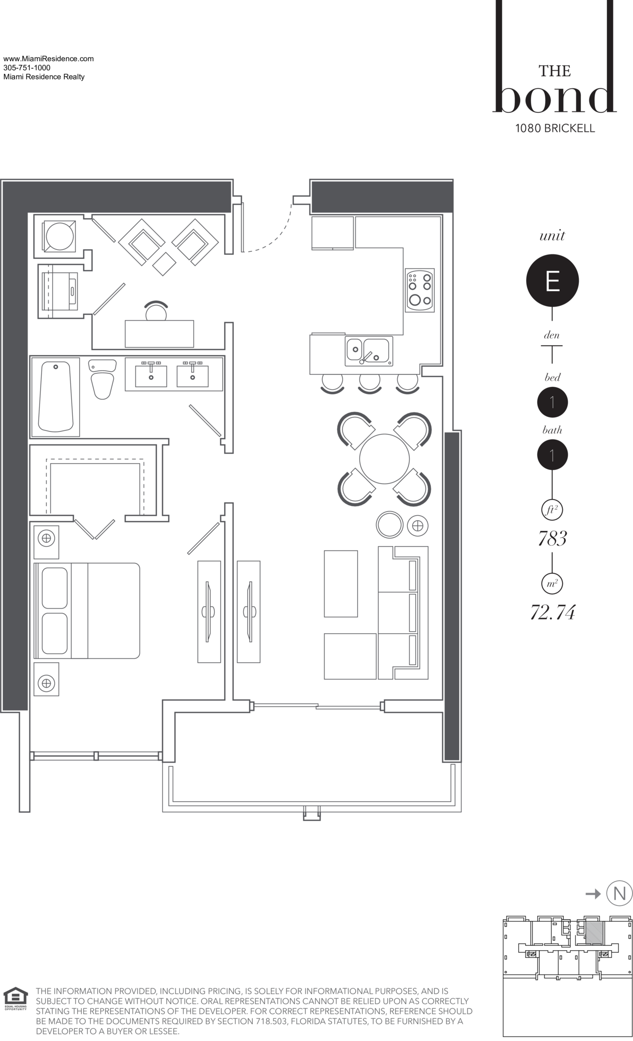 Beautiful residence at The Bond, 1080 Brickell Ave, Unit 2607, located in the heart of Brickell. This elegant 1 Bed + Den / 1 Bath unit features a modern layout with high-end finishes, abundant natural light, and stunning city views. The open kitchen is equipped with top-of-the-line appliances, sleek cabinetry, and premium countertops, seamlessly connecting to the living and dining areas. The unit includes a spacious walk-in California closet and in-unit washer and dryer for added convenience. The Bond is a luxury full-service building offering 5-star amenities, including a resort-style pool, state-of-the-art fitness center, spa, business center, children’s playroom, 24-hour concierge, and valet parking. Prime location just steps from Brickell City Centre, Mary Brickell Village, restaurants, shopping, and easy access to major highways and Miami International Airport.Any questions about The Bond?