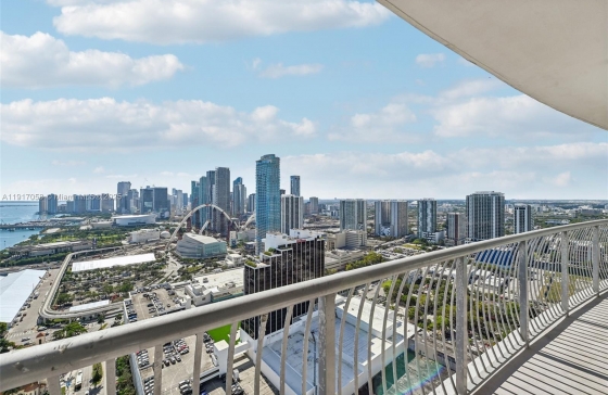 Experience 42nd-floor living with stunning, unobstructed views of Biscayne Bay and the Miami skyline from your full-length balcony. This updated 1-bedroom features new flooring, an open kitchen with stainless steel appliances, in-unit washer/dryer, and a 4-year-old AC. Enjoy resort-style amenities including pool, fitness center, and sauna. HOA covers cable, internet, and water ($1,630/mo, dropping to $990 in Jan 2026). Owner offers $2,000 credit toward HOA, closing, or paint. Steps from Margaret Pace Park, minutes to Wynwood, Brickell, South Beach, and major highways.Any questions about Opera Tower?