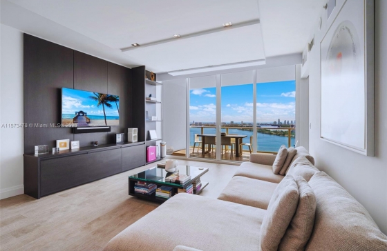 2020 N Bayshore Dr #3106, Miami, FL, 33137 Enjoy direct bayfront & dramatic city views from this sophisticated, flow-thru 2-bdrm/2.5-bath + den home that blends elegance, function & artful design. Spanning nearly 1,700 SF, the beautifully appointed interiors feature Porcelanosa wood floors, custom European doors, Italian cabinetry & Wolf/Sub-Zero appliances. The spacious den offers versatility; large walk-in closets & full laundry rm provide ample storage; integrated Savant/Sonos smart technology ensures modern convenience. Paramount Bay by Arquitectonica w/ interiors by Lenny Kravitz, is celebrated for resort-style amenities, including sunrise & sunset pools, spa & fitness center, club lounge, theater & 24/7 concierge. Edgewater’s premier bayfront address offers effortless access to Midtown, Wynwood, Design District & Miami Beach.