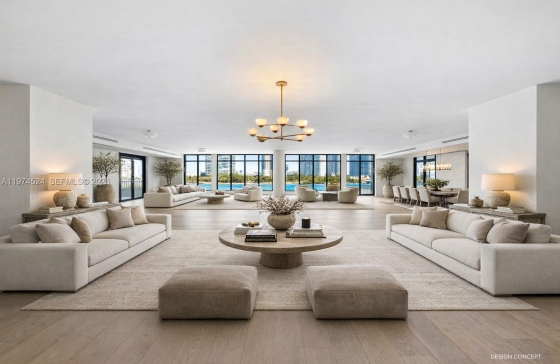 7043 Fisher Island Dr #7043, Miami Beach, FL, 33109 A RARE FIND ON THE ULTRA EXCLUSIVE FISHER ISLAND… NEARLY 10,000 SF OF INTERIOR LIVING AT THE 6-STAR FULL-SERVICE PALAZZO DEL SOL WITH SWEEPING WATER & CITY VIEWS! This Move-In-Ready, Expansive Full-Floor Residence features 7 bedrooms + 7 bathrooms + 2 powder rooms. Spanning 9,826 SF of Interior Living Space + 1,797 SF of Deep Wrap-Around Terraces enjoy Sunrise & Sunset Views. 2 Private Elevators lead you to a Bayfront Great Room with Elegant Formal Dining & Lounging Areas. European oak wood flooring throughout. Boffi eat-in kitchen with Bohemian grey granite countertops, Gaggenau appliances, Dornracht faucets, Sub&Zero fridge & wine cooler. Primary Suite with Sunset Views + a separate Lounging Area. Primary Bath in Book-Matched White Carrara Marble, Double Vanity Sink, Custom Fisher Island Boffi Soaking Tub + Rain shower. 3 parking spaces + 1 golf cart parking space. Palazzo Del Sol is an Award-Winning Building by Architect Kobi Karp, with Public Spaces by Antrobus Design, and Built by ASR Construction. Building Amenities & Services include Butler-Serviced Aperitivo Bar & Lounge, Theater, Hair & Makeup Salon, Private Massage Rooms, Business Center, Gym & Cardio Room, Kidville Playroom, Concierge, Valet, Zero-Edge Pool & Spa with Attendant.