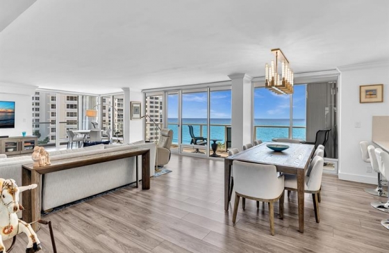 4300 N Ocean Blvd #7H, Fort Lauderdale, FL, 33308 Step into 2026 in this beautifully renovated corner residence offering over 2,000 square feet of direct oceanfront living. This spacious 3-bedroom, 2.5-bath home features an open, modern layout ideal for everyday comfort and entertaining and a semi-private elevator. The open kitchen showcases quartz countertops, shaker cabinetry, and top-of-the-line Bosch stainless steel appliances, flowing seamlessly into the living and dining areas. Enjoy stunning ocean views from the moment you walk thru the door. All bathrooms have been renovated with high-quality finishes, and neutral luxury vinyl flooring runs throughout. Accordion shutters provide added peace of mind. Plaza East offers resort-style amenities, a rentable guest suite, fully funded reserves, and has passed its 50-year recertification.