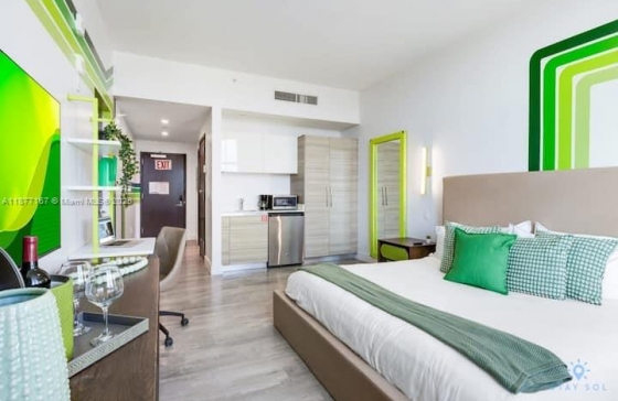 Beautiful studio at Costa Hollywood Resort. Fashionably decorated with partial Ocean/Bay views. Fully furnished and equipped in a luxury Condo Hotel. Just steps from Hollywood Boardwalk with many restaurants, bakery, shops, sports. Amazing rooftop with bar, pool, jacuzzi, lounge, areas and spectacular views of the City, Intracoastal and Beach. Association fee includes Cable TV, Internet, water, gym, electricity and all amenities. Unit management by Stay Sol. NO RENTAL RESTRICTION!!!!!Any questions about Costa Hollywood?