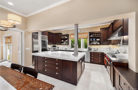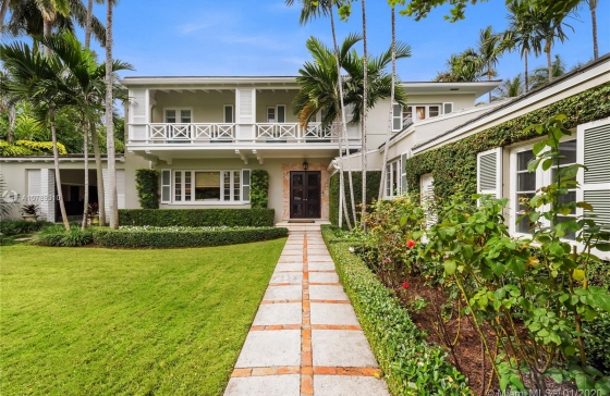 This Florida style private retreat on Sunset Island II is surrounded by tall palms & hedges for utmost privacy. Boasting a picturesque gated, front garden entrance, elegant interiors w/ terrazzo & wood floors & detailed doorways, smart home features such as a Nest system & Ring doorbell, formal dining room, living room w/ a fireplace, & master bedroom with his & hers walk-in closets & a spacious seating area, this 4 bedroom, 4 full & 1 half bathroom residence is the perfect oasis. In the chef’s kitchen find marble countertops, Sub-Zero & Wolf appliances. The outdoors are an entertainer’s dream w/ a beautiful pool, full outdoor living room & bar & a summer kitchen with an Al Fresco grill. Located in one of Miami’s most coveted guard, gated private islands, the Sunset Islands.A10789310 Condo # for Sale in Star Island, Miami Beach