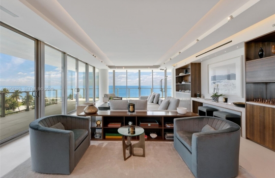 Extensively renovated and move-in ready 4-bedroom, 5.5-bath corner beachfront residence at Oceana Key Biscayne, offering refined architecture, thoughtful detailing, and seamless indoor-outdoor living. Floor-to-ceiling glass fills the home with natural light and frames ocean, bay, and village views enjoyed from every room and the wrap-around terraces. Architectural elements include shadow reveal wall details, layered architectural lighting and Res Italia custom doors. Custom millwork is carried throughout, with Giellesse Italian closet systems and shelving as well as Casabath Italian bathroom cabinetry. The primary suite offers sweeping ocean views, a spa-like bath with soaking tub overlooking the ocean, and two full primary bathrooms with walk-in showers. Three additional bedrooms enjoy beautiful and completely private views overlooking Biscayne Bay and the Village of Key Biscayne. The kitchen features Binova Italian cabinetry, Miele appliances, an oversized waterfall island, and a separate walk-in pantry with wine storage. The home is equipped with Savant and Lutron smart home systems with automated lighting, climate control, audio/video and blinds on every door and window. Unit has 4 parking spaces and 2 storage units. Oceana Key Biscayne provides world-class amenities including 24-hour concierge, beachfront fitness center and spa, 500ft of beach, oceanfront restaurant, tennis court, putting green, media room/cinema, valet, golf cart parking, and more.Any questions about Oceana Key Biscayne?